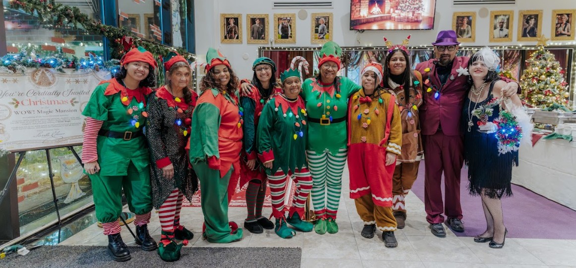 On December 12th from 5p-7p, the WOW! Magic Mansion welcomed our Guests and Residents into a Christmas celebration inspired by the elegance and charm of a 1920s Tudor-style mansion—an evening designed to feel timeless, joyful, and full of heart.