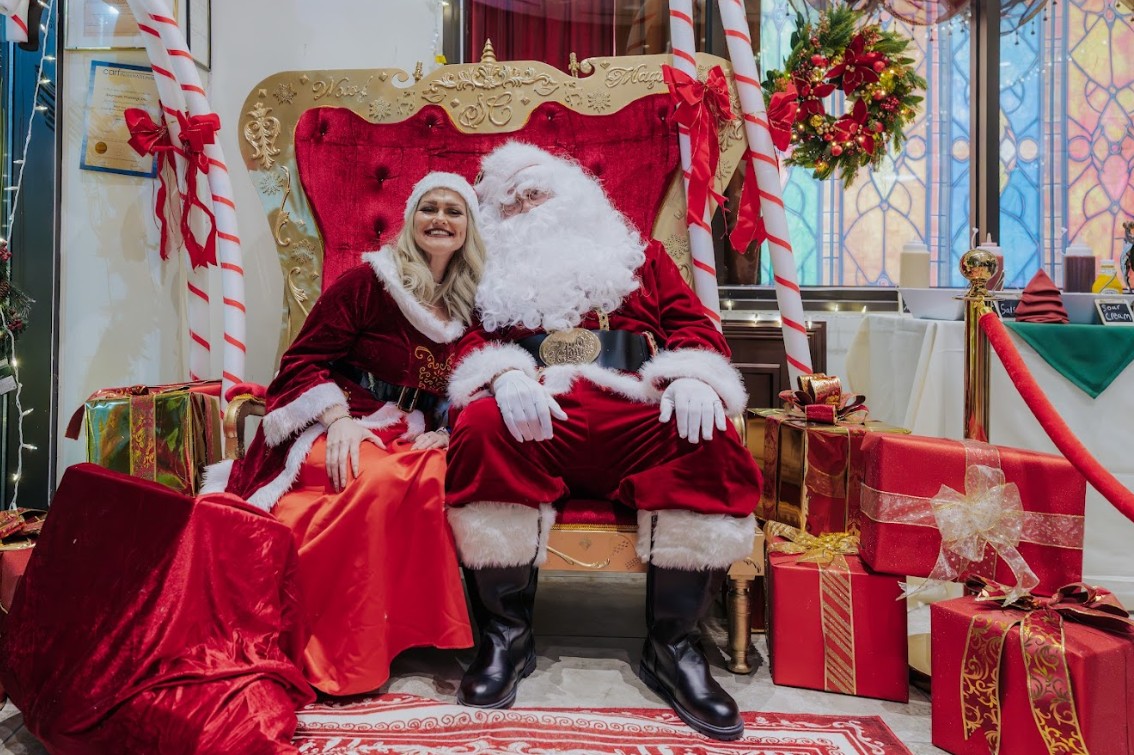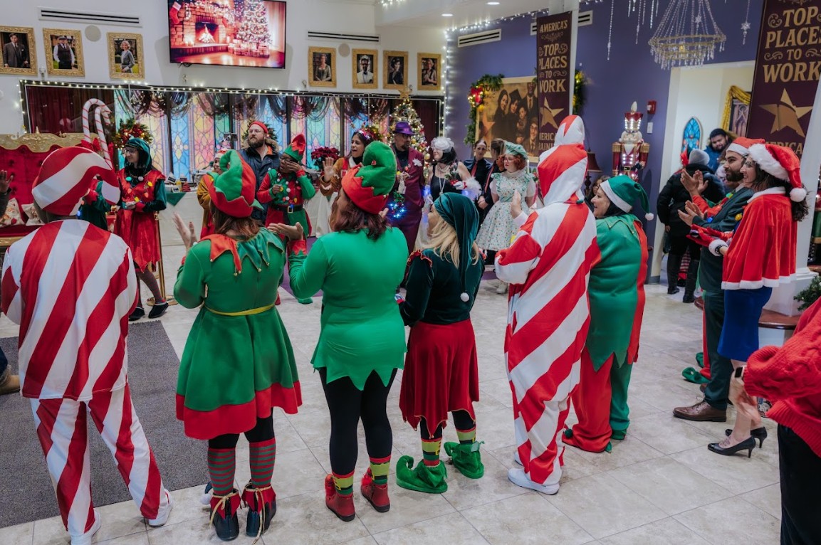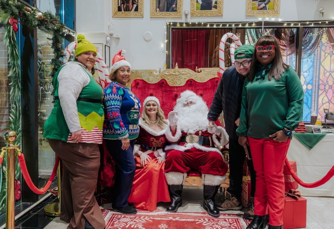 From the moment folks arrived, they were transported into a holiday story unfolding room by room. The lobby glowed with festive light as a pianist filled the space with classic melodies, setting a warm and welcoming tone. Throughout the mansion, traditional carolers (performed by the Harmony Jewels) moved through the halls, their voices bringing the sounds of Christmas to life in a way that felt both nostalgic and WOW! Magical.